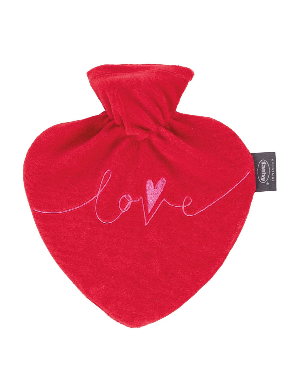 Fashy 0.7 Litre Hot Water Bottles with Heart Shape Plush Cover - Red