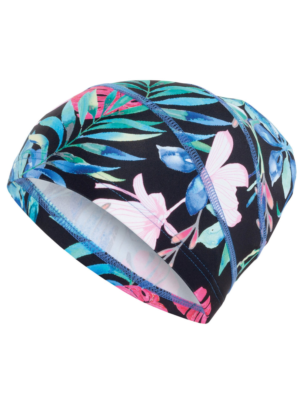 The Adult Multi-Coloured Fabric Swim Cap from Fashy is a comfortable cap with great elasticity. It offers some extra space for long hair and holds your hair perfectly while swimming. Designed with a beautiful multi-coloured print.