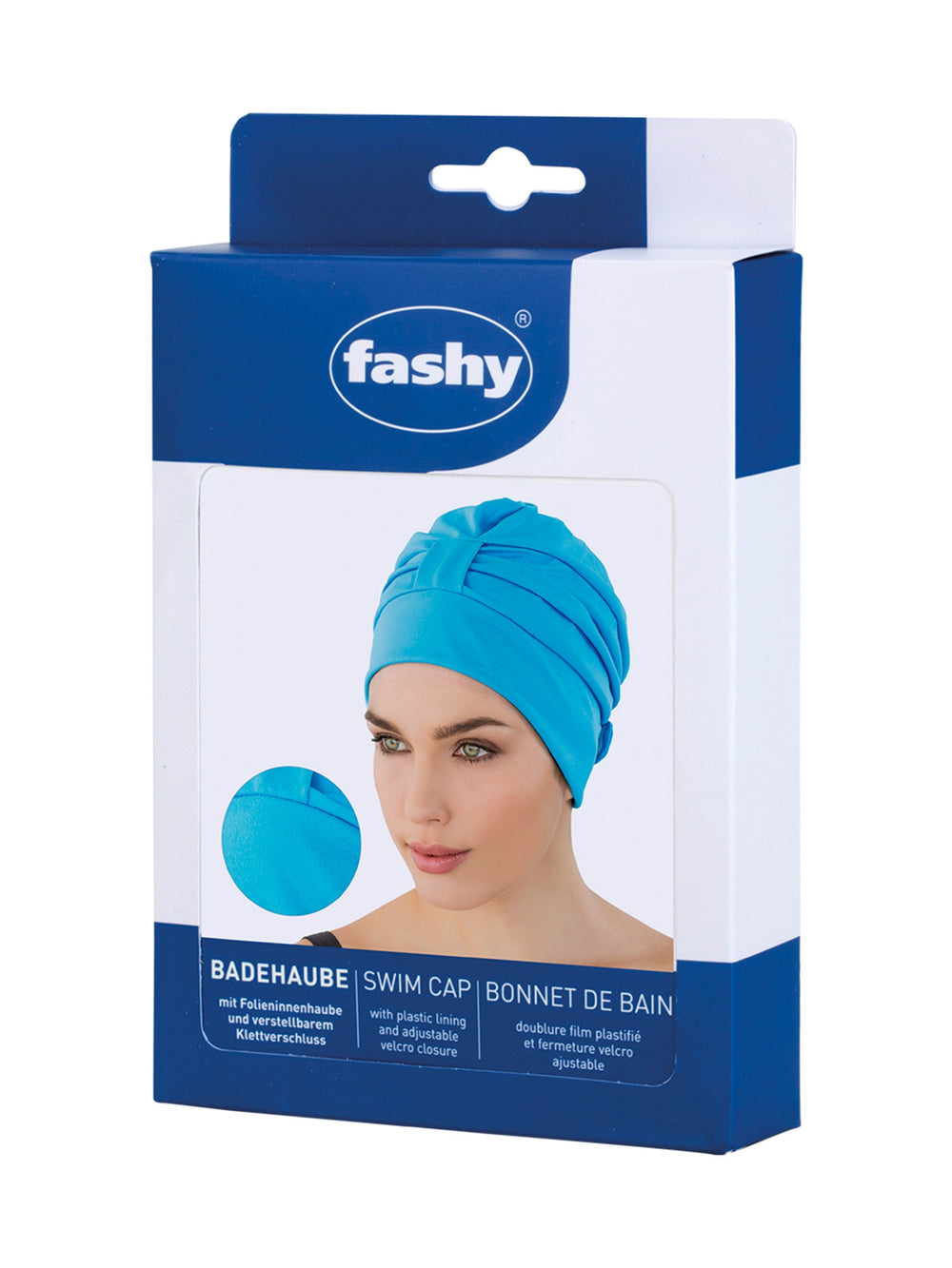 The Draped Fabric Swim Cap from Fashy features a decorative loop for an elegant look. It is adjustable with the hook and loop closure which gives a secure fit. The comfortable smooth rubber grip band and plastic lining offer great comfort in the water.