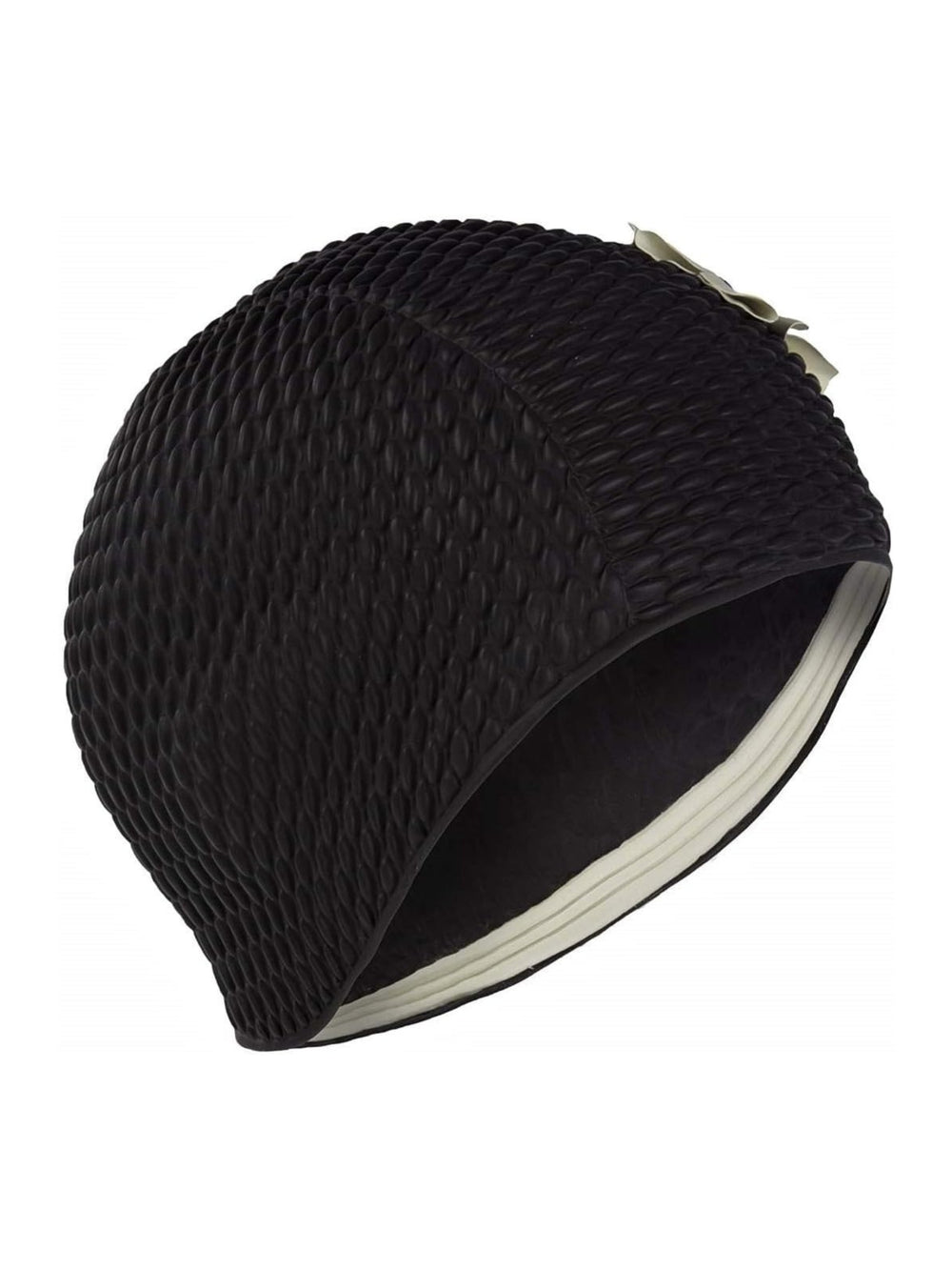 The Flower Bubble Swim Cap from Fashy is designed with lovely flower applique. Made of thick rubber fabric and bubbles to trap air, this swimming cap keeps you warm while swimming. Suitable for outdoor or open-water swimming.