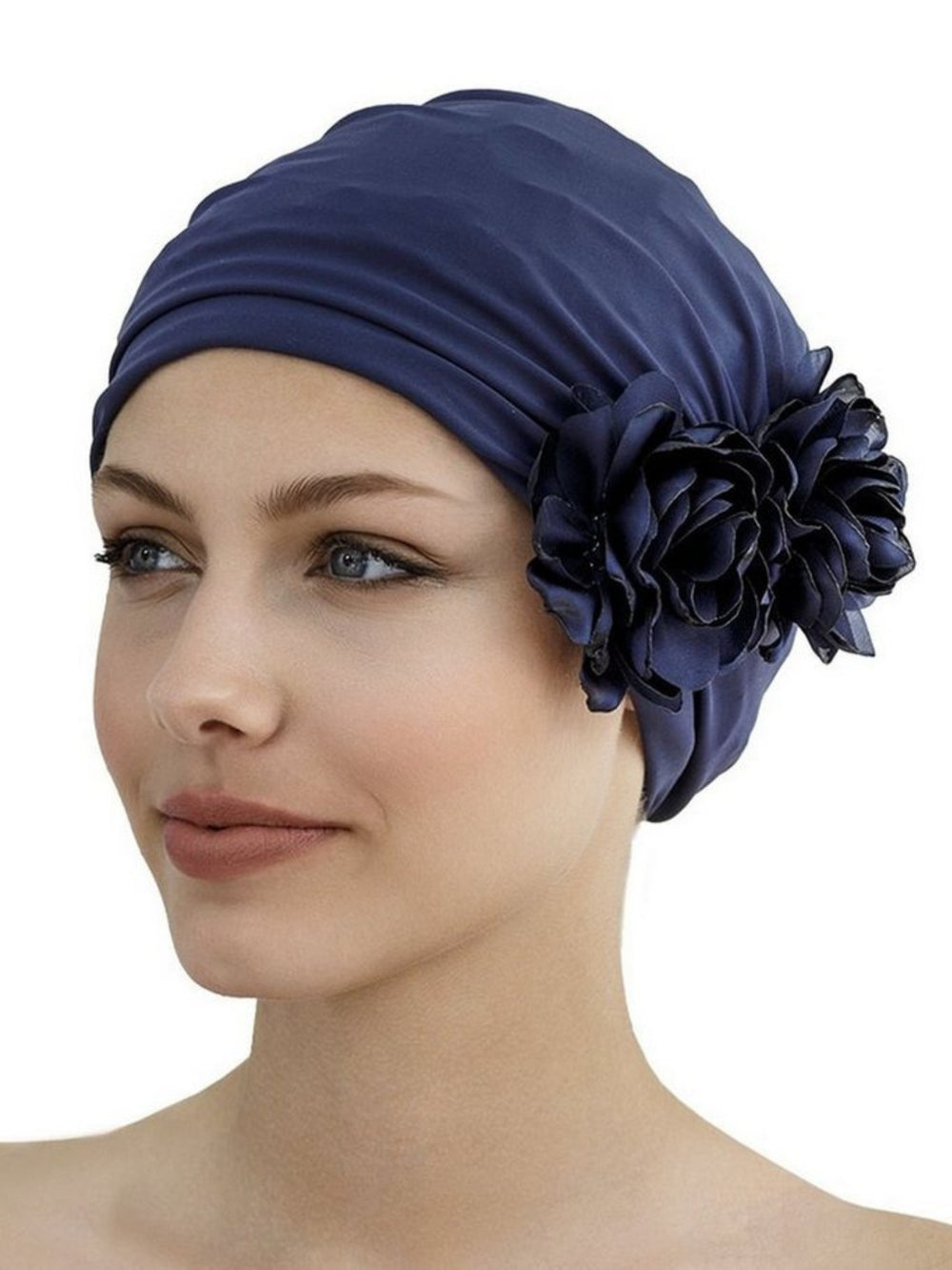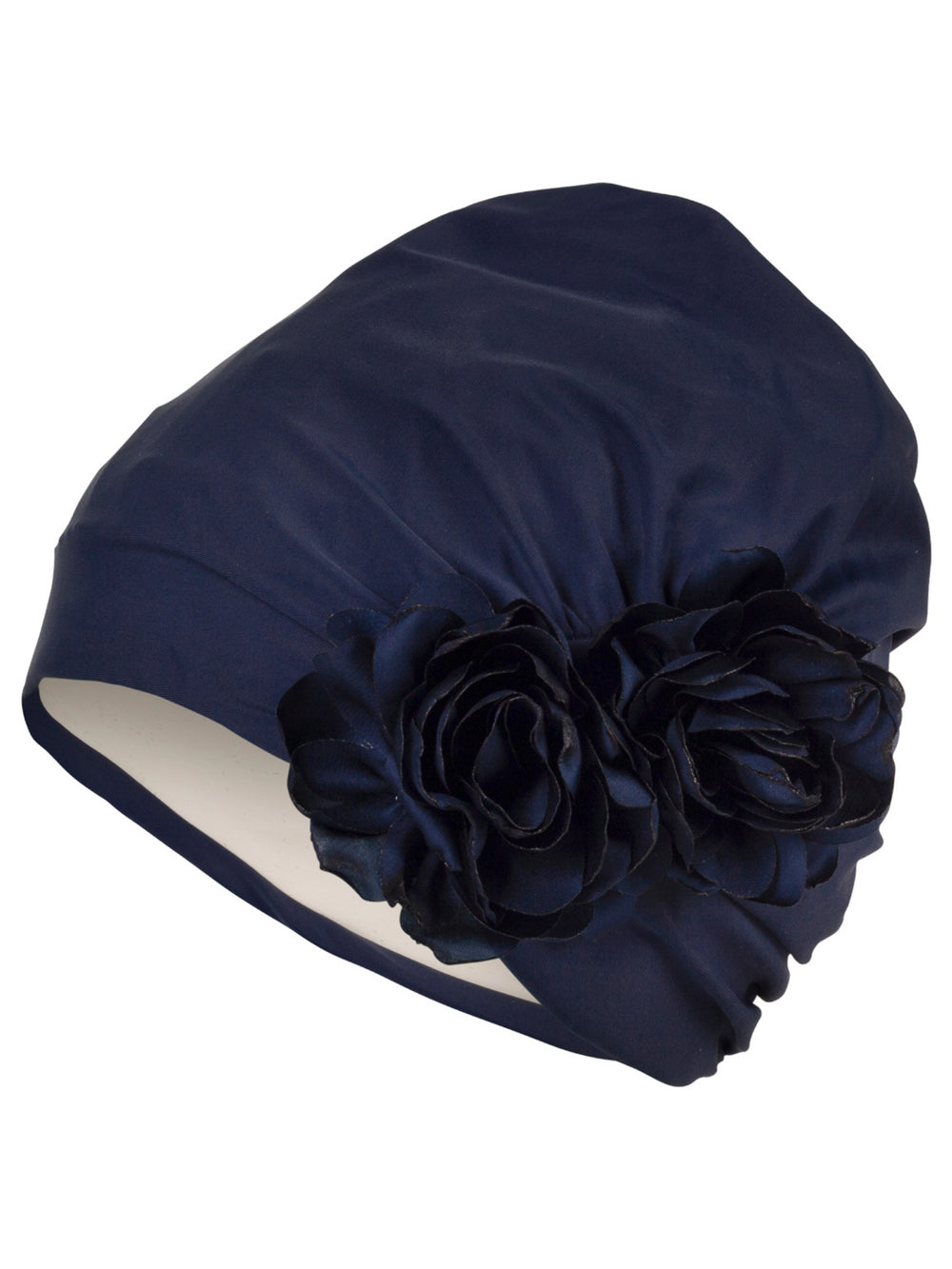 Fashy Flower Fabric Swim Cap - Navy is backordered and will ship as soon as it is back in stock.