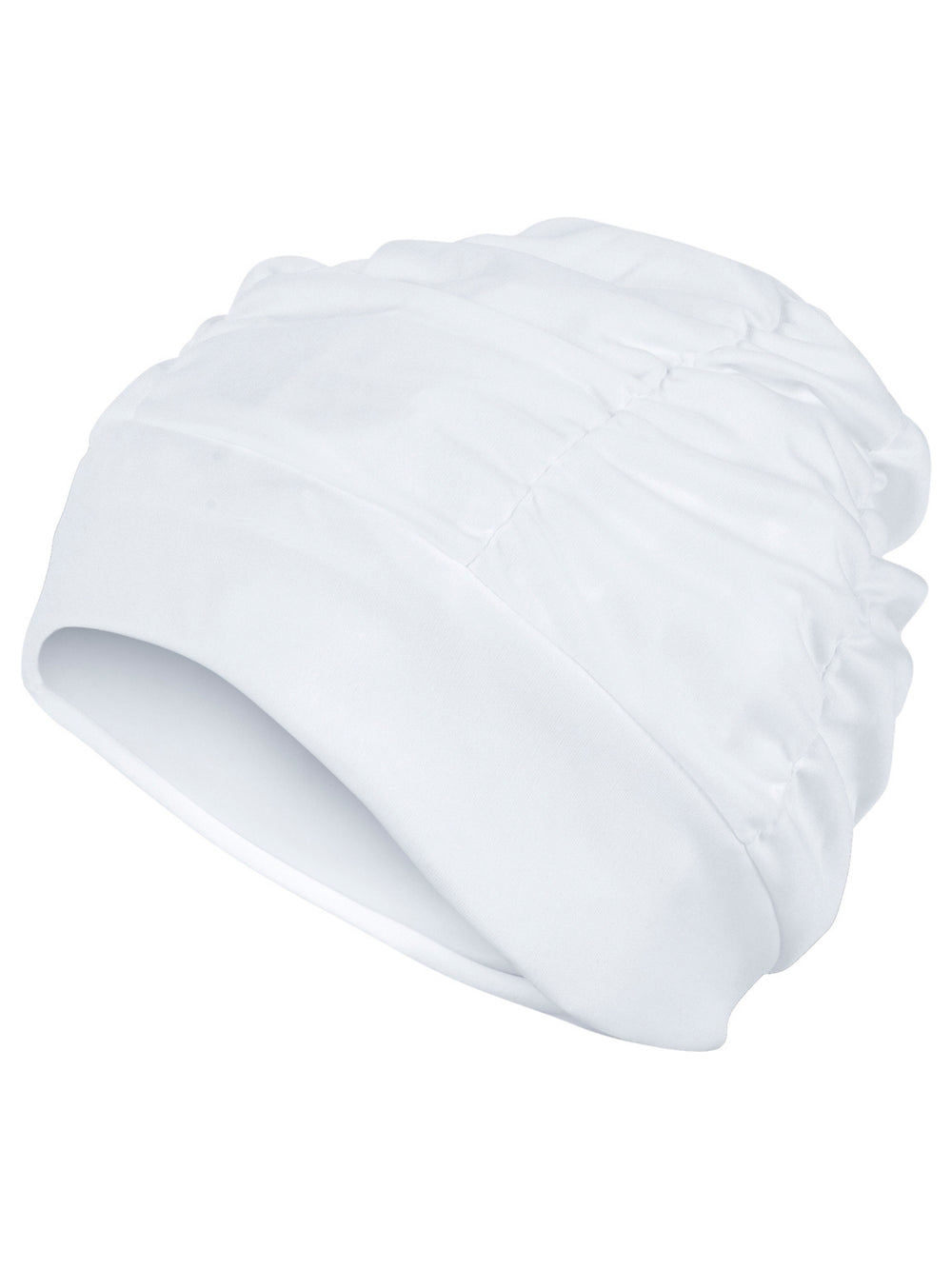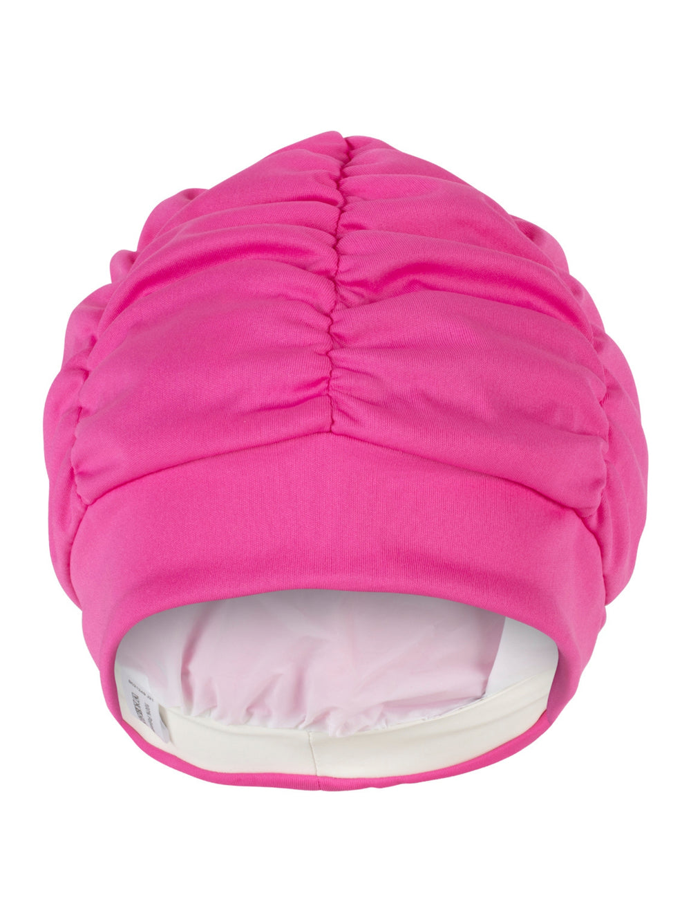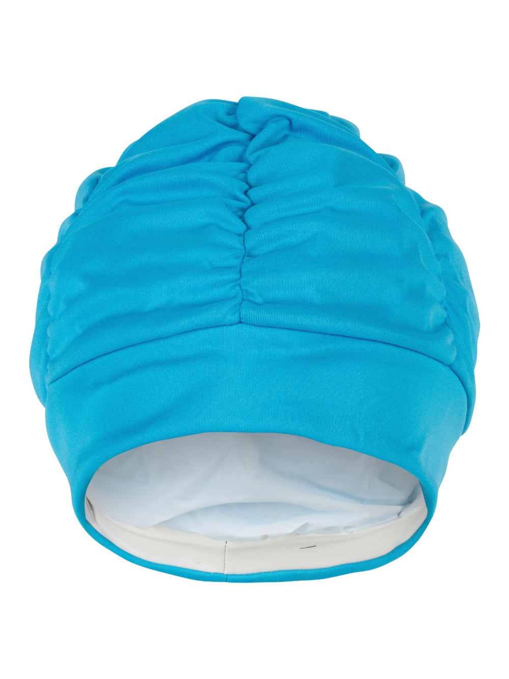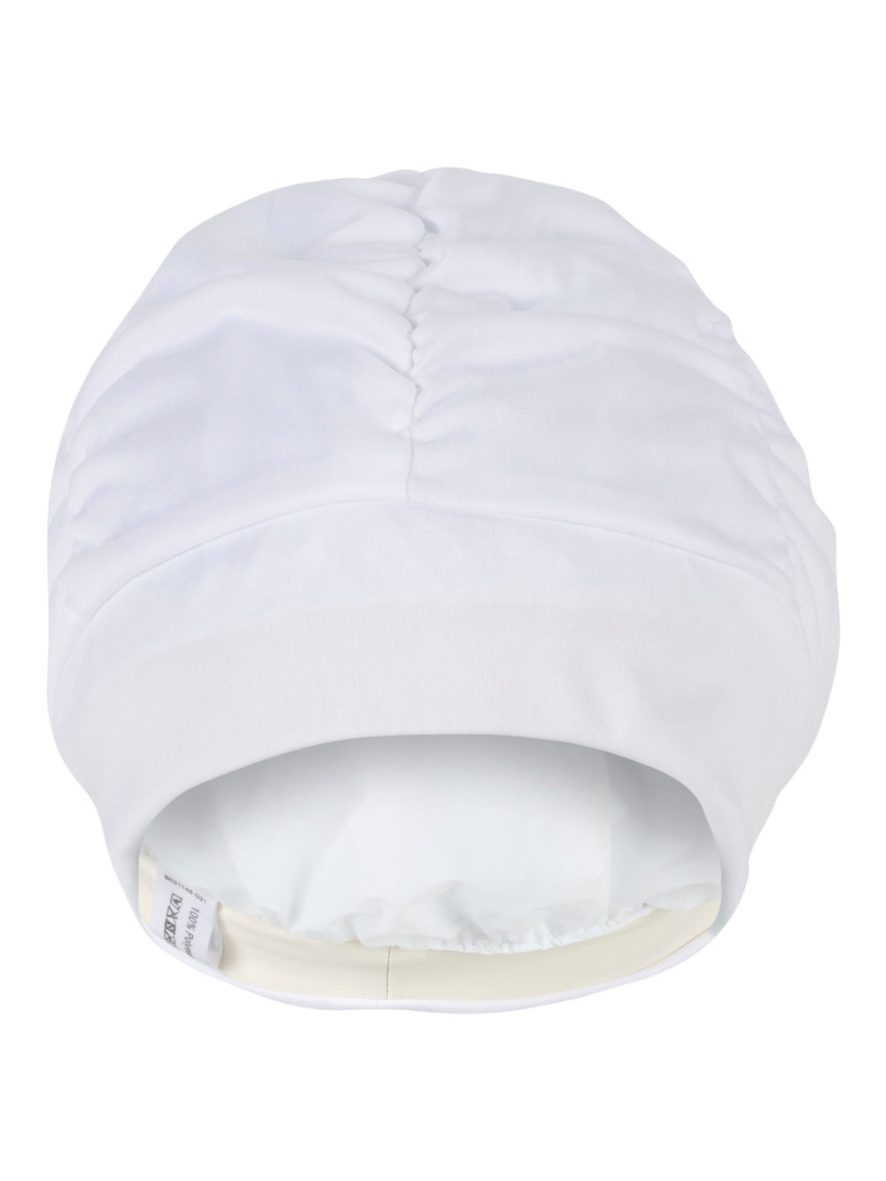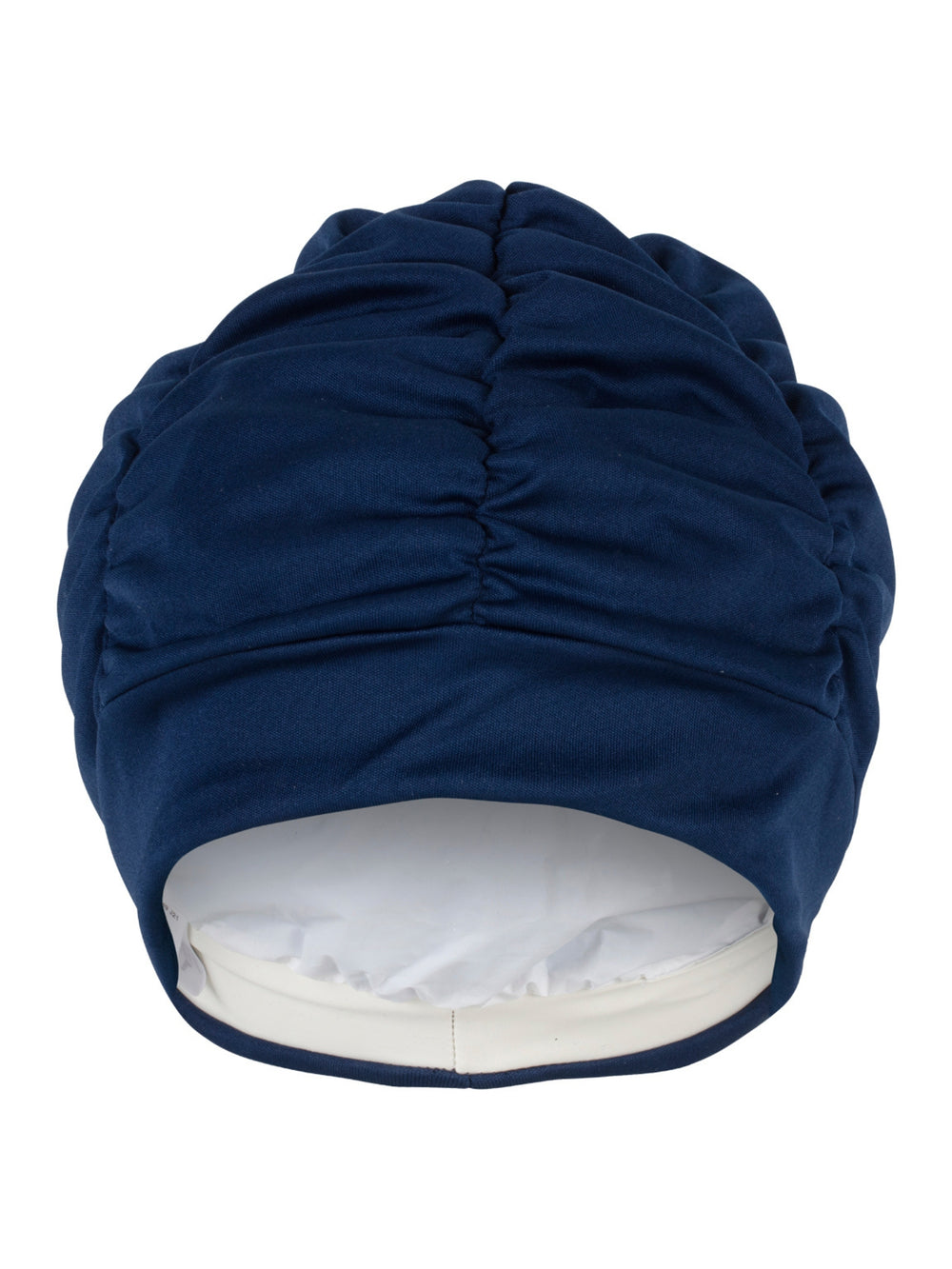 The Pleated Fabric Swim Cap from Fashy is designed with ruched dividing seams for an elegant look and a comfortable smooth rubber grip band all around. It provides warmth and helps protect your ears while swimming.