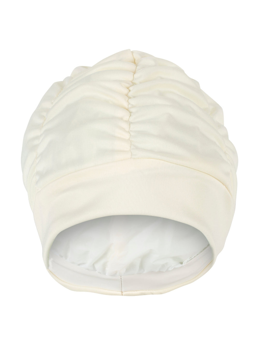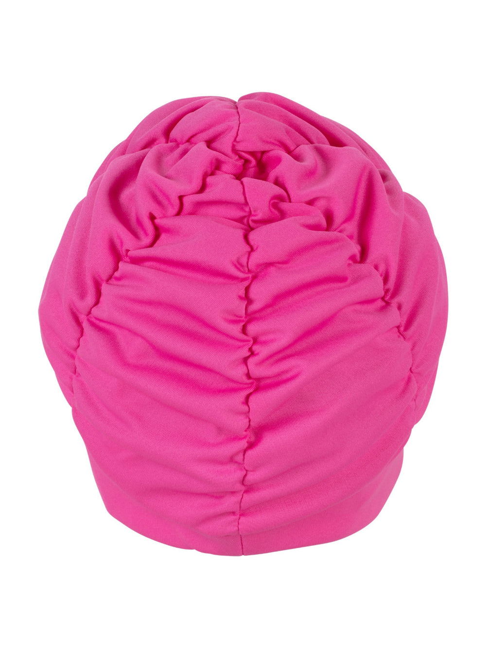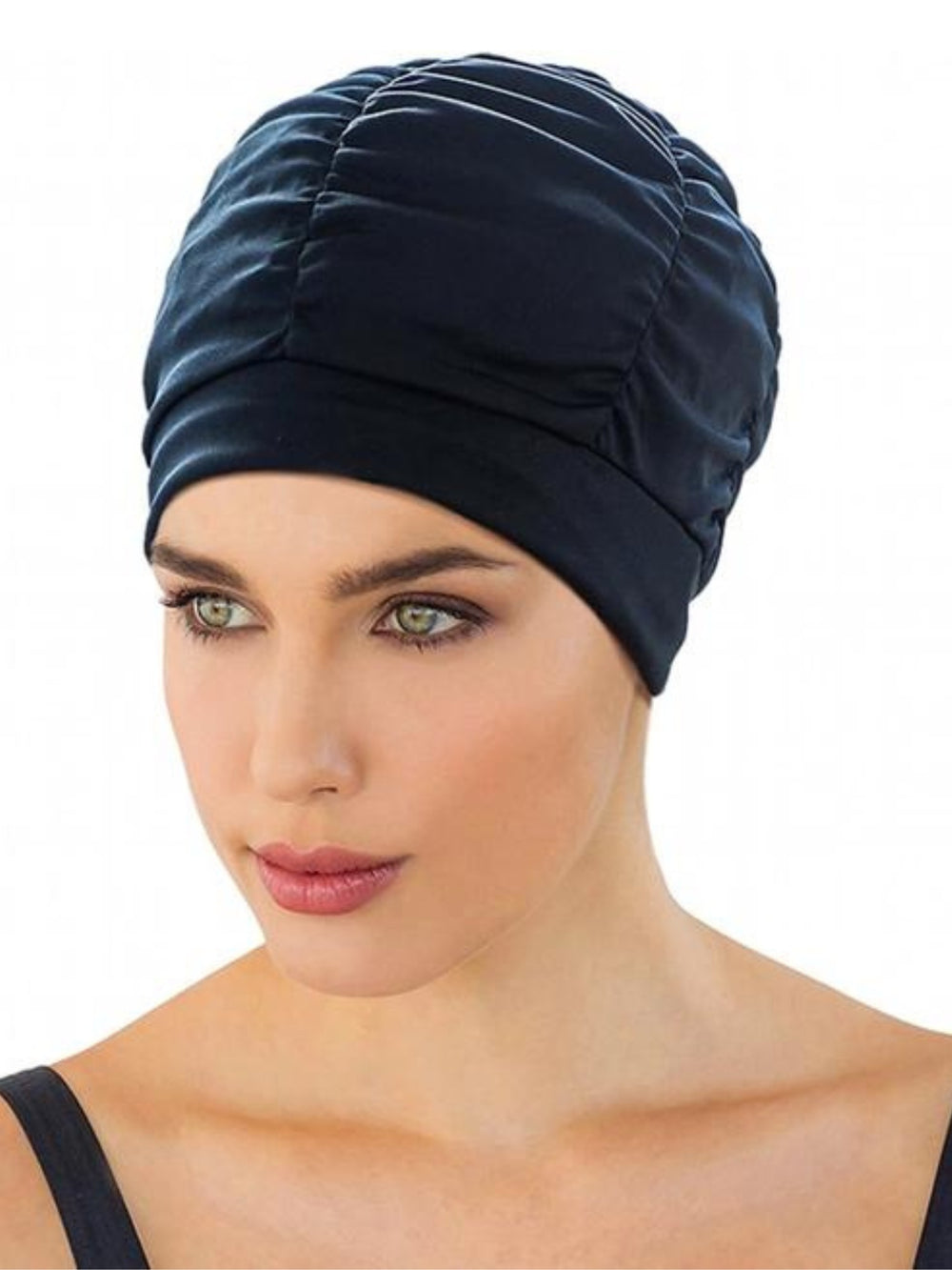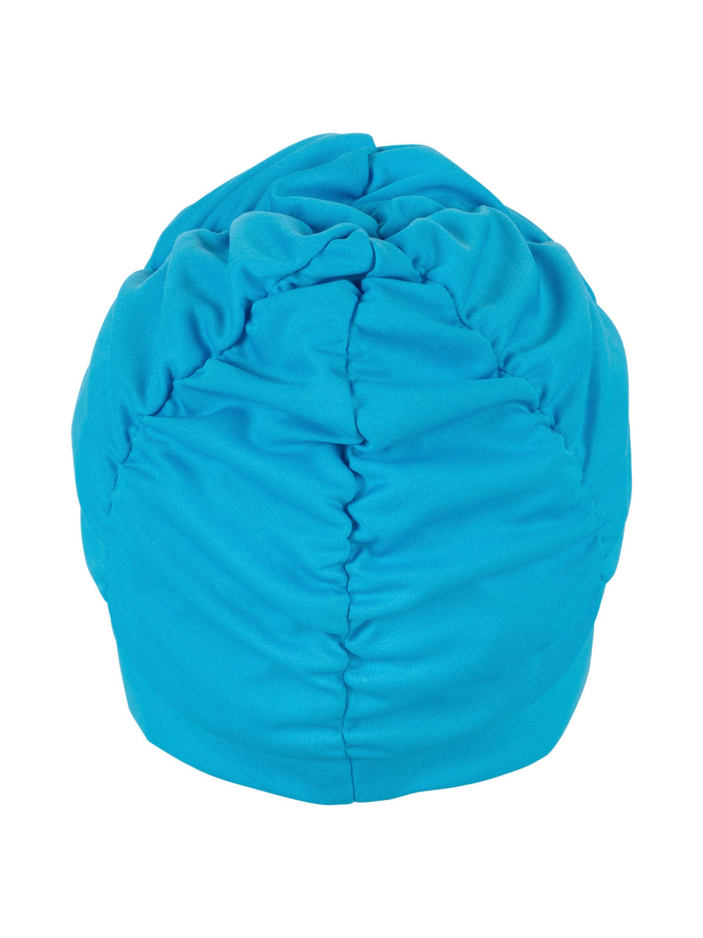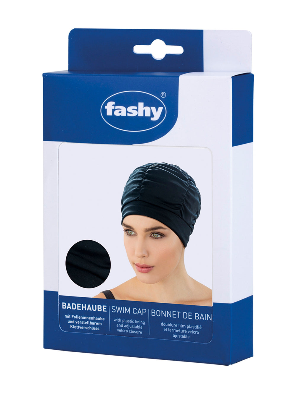 The Pleated Fabric Swim Cap from Fashy is designed with ruched dividing seams for an elegant look and a comfortable smooth rubber grip band all around. It provides warmth and helps protect your ears while swimming.