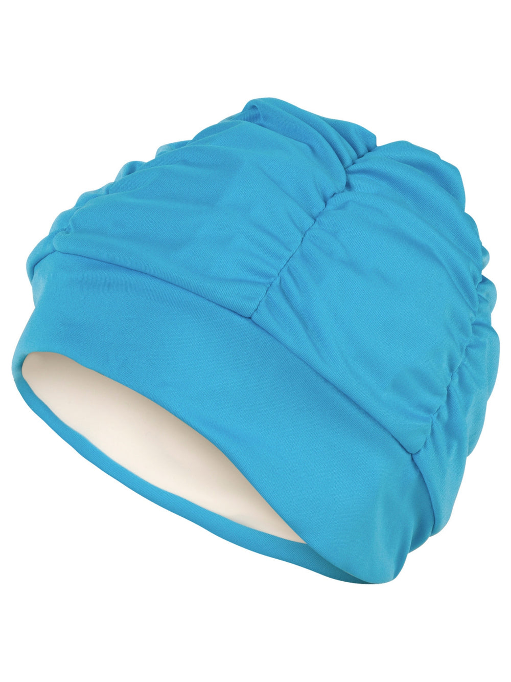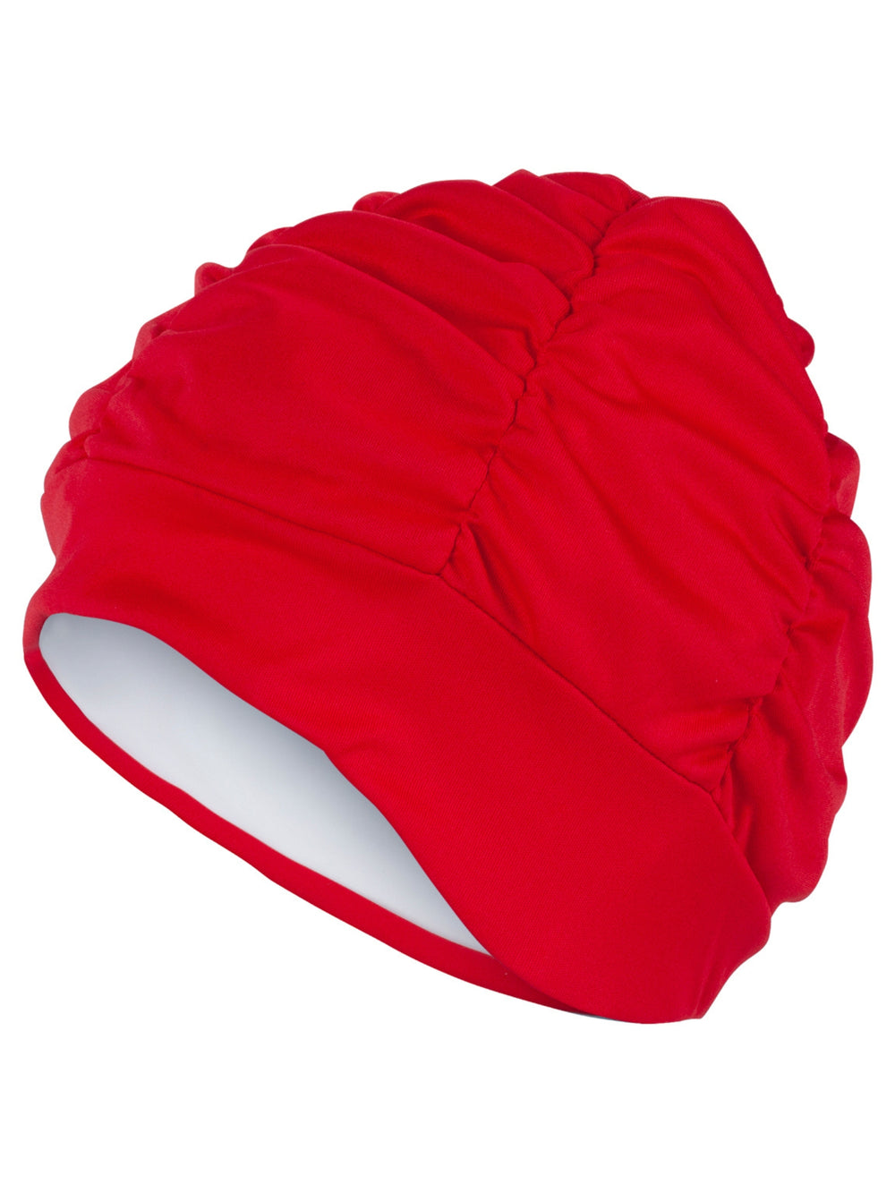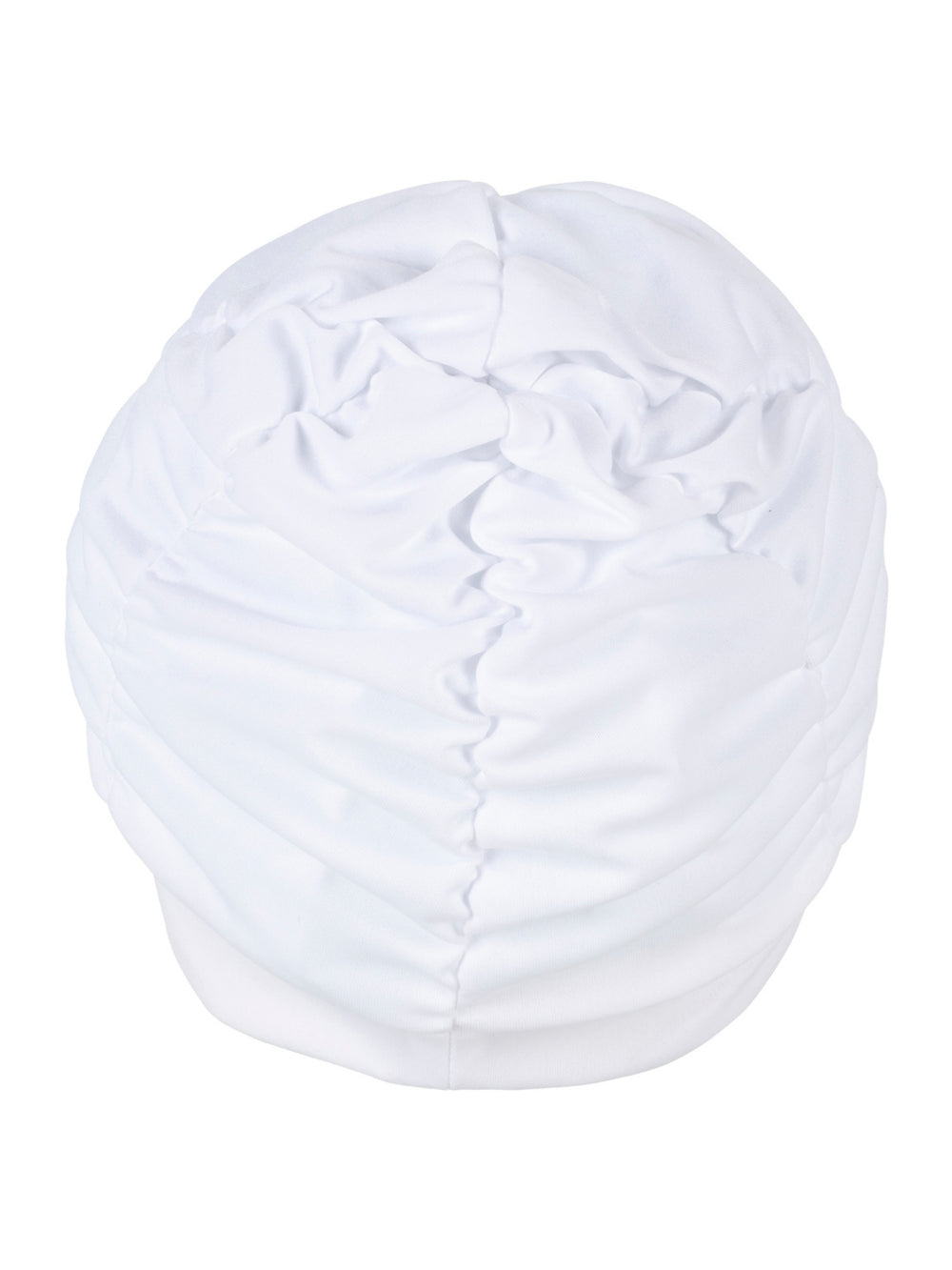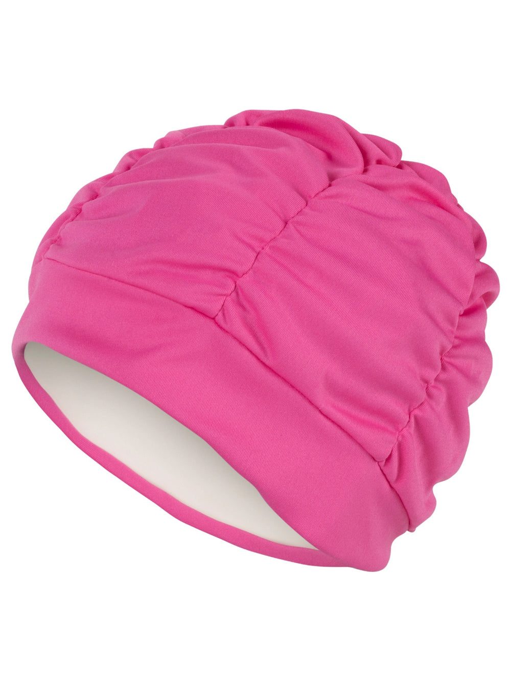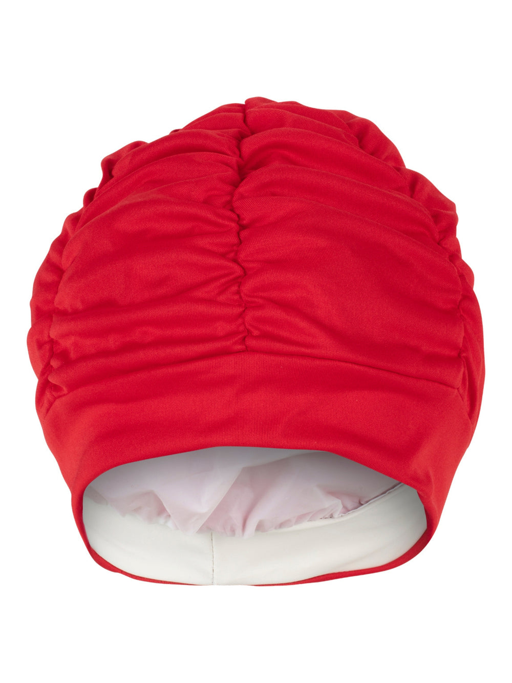 The Pleated Fabric Swim Cap from Fashy is designed with ruched dividing seams for an elegant look and a comfortable smooth rubber grip band all around. It provides warmth and helps protect your ears while swimming.