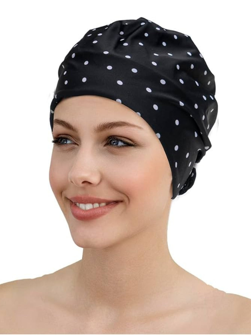 Fashy Polka Dot Fabric Swim Cap - Black/White