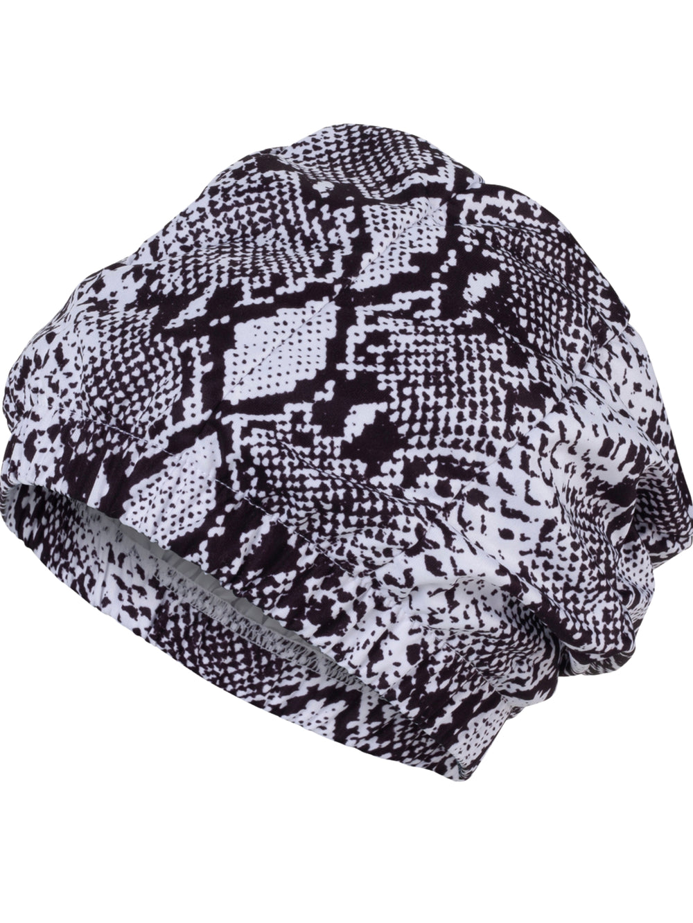 This Ruched Shower Cap from Fashy in a distinctive snakeskin pattern, is a stylish way to keep your hair dry when taking a shower. This shower cap has a wide headband for a perfect fit, it is lined with PEVA foil, with antimicrobial properties inside to ensure your hair stays dry and in place. The ruched design can be expanded to accommodate long or short hair.
