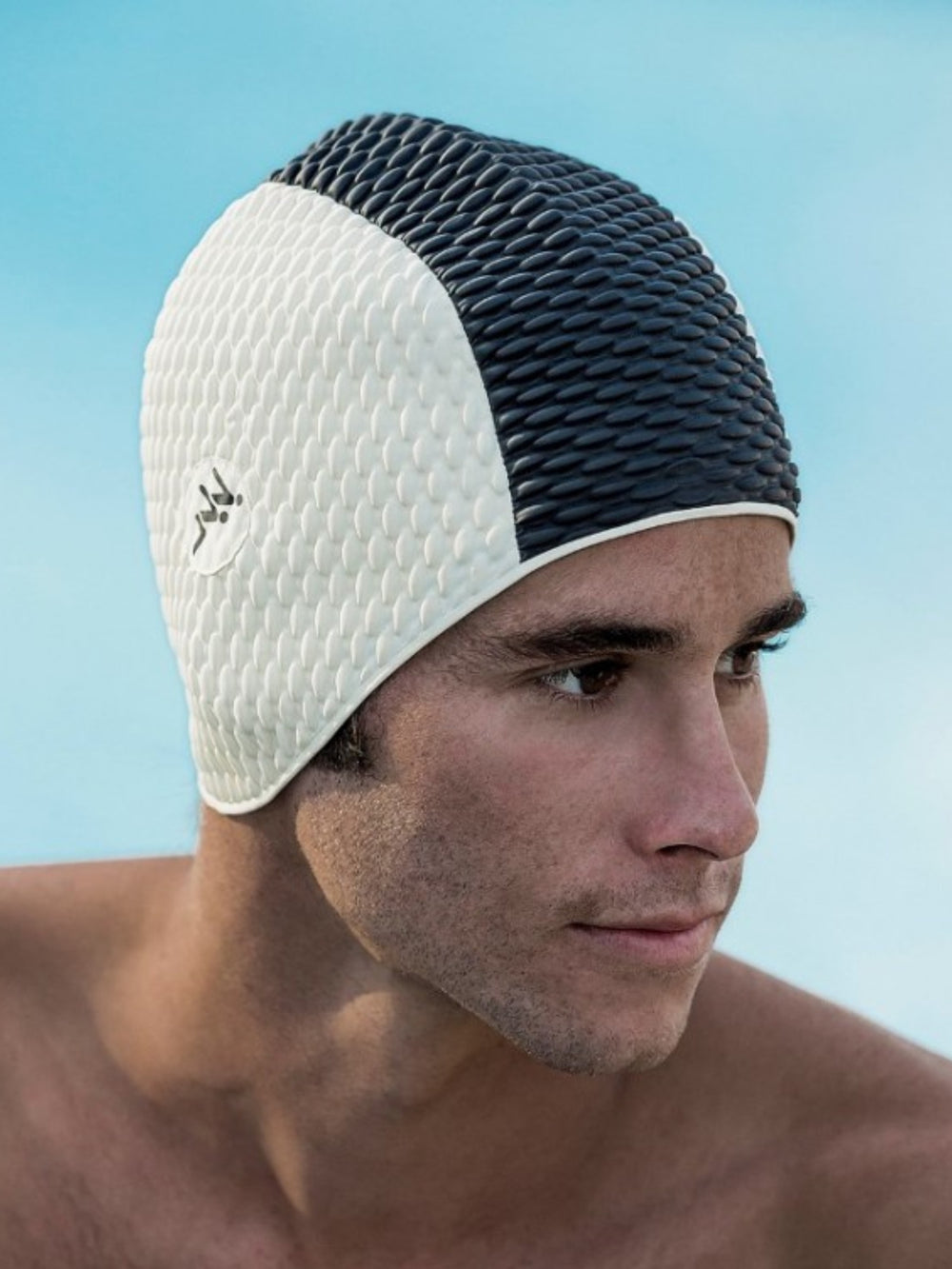 Fashy Two Tone Bubble Swim Cap - Navy/White is backordered and will ship as soon as it is back in stock.